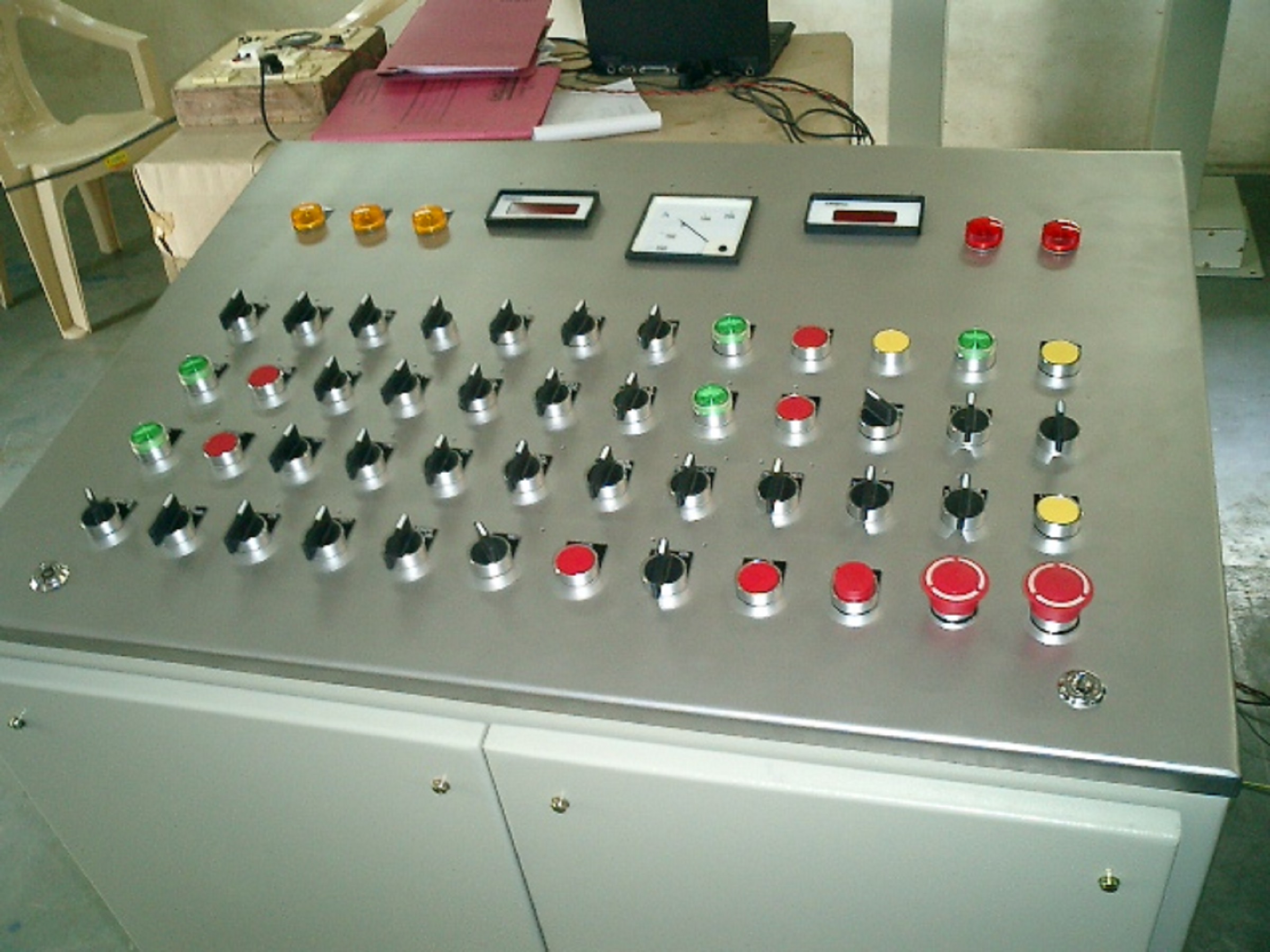 The control desks are designed to make monitoring and control of devices easier and more convenient in facilities such as industrial plants and laboratories. The basic Control Desk has various indications and controls like Push Buttons, Selector Switches. Indications and Controls may be either digital or analog. The control desk has all the important indications and control, so that entire plant or sub-plant can be monitored and/or controlled from single location.